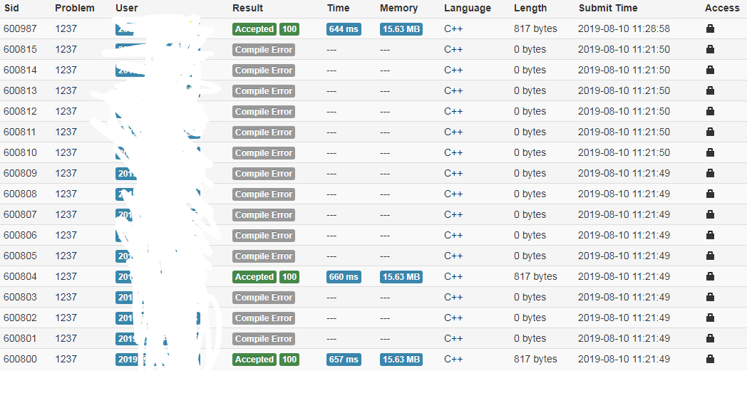 回来看成绩,本来已经做好心理准备爆零的我惊奇地发现自己做了的两道题都A了!