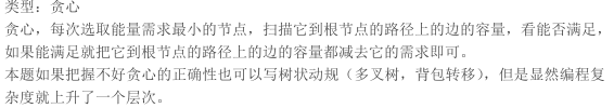 看完题目之后发现还是T1比较可做,在发现之前思路的BUG之后想到了可以用一个类似背包的思路做。对每个点的每个儿子进行0-1背包,算出不超过在当前节点流量限制的情况下,最多能选多少个节点;在能够选节点个数同样多的方案中,贪心地选取所需能量最小的那种方案。叶节点作为边界特殊处理一下。