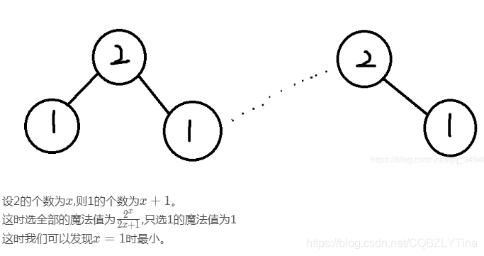 (而且2在中间 否则取1较多的那一边就可以 当然 这个在树dp里是不需要我们讨论的