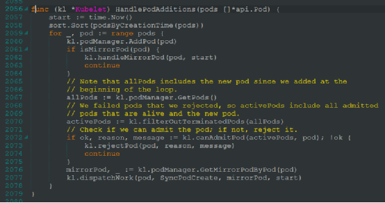 调用了func (kl *Kubelet) HandlePodAdditions(pods []*api.Pod) {