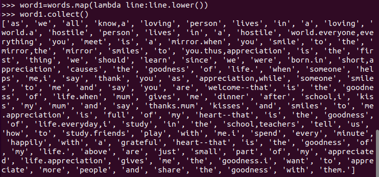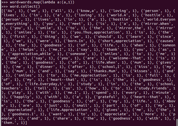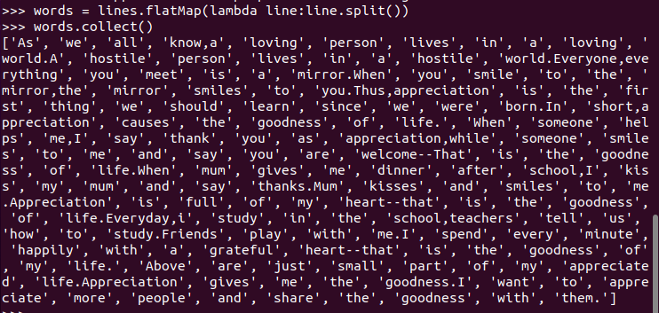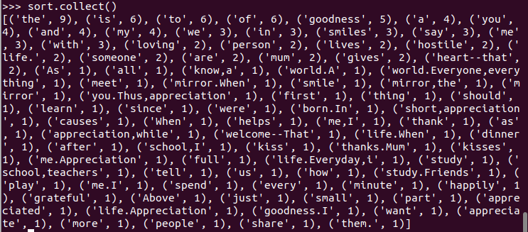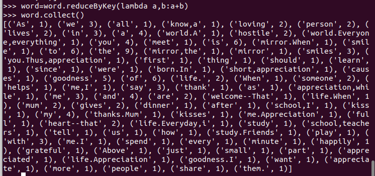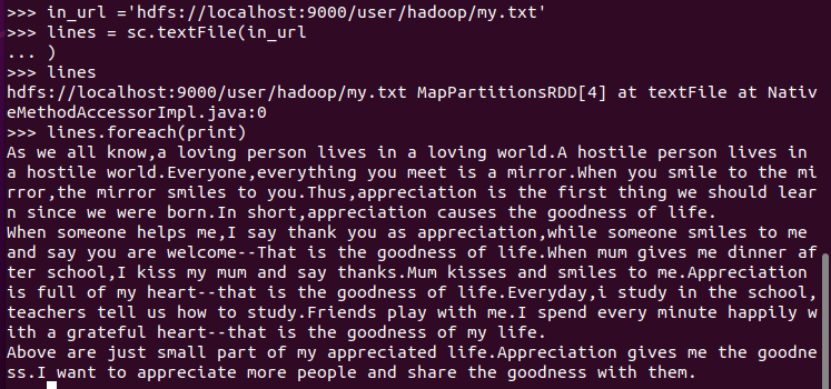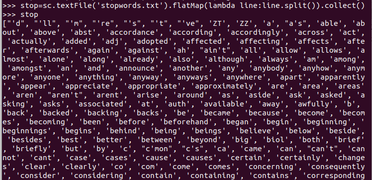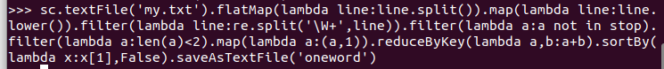 C.和作业2的“二、Python编程练习:英文文本的词频统计 ”进行比较,理解Spark编程的特点