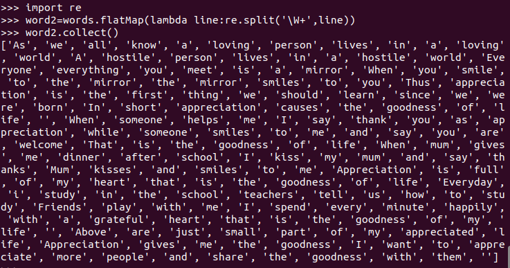 标点符号re.split(pattern,str),flatMap()