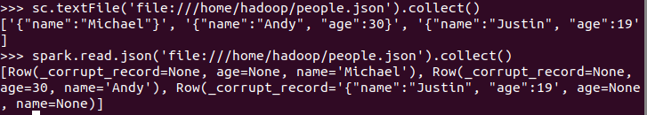 用相同的txt或json文件,同时创建RDD,比较RDD与DataFrame的区别。