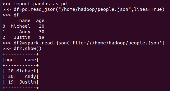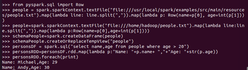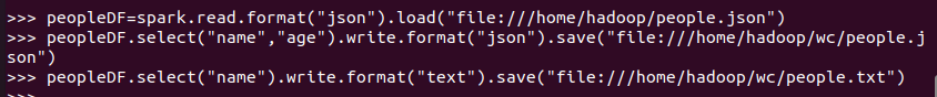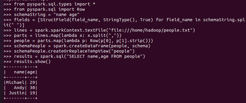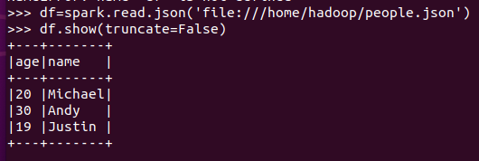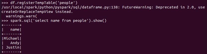 spark.sql执行SQL语句 spark.sql('select name from people').show()