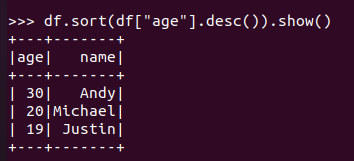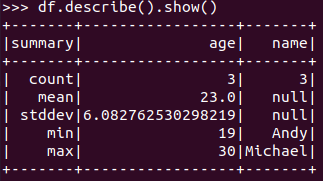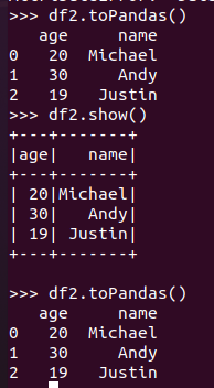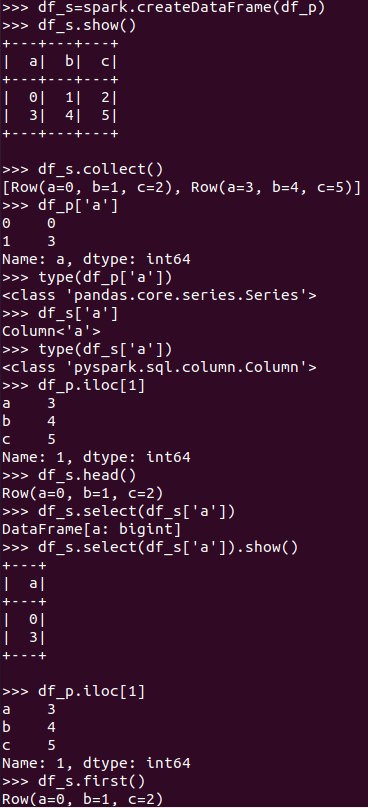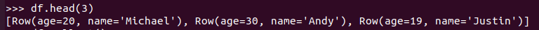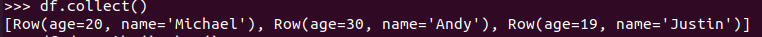 输出全部行 df.collect() #list类型,list中每个元素是Row类