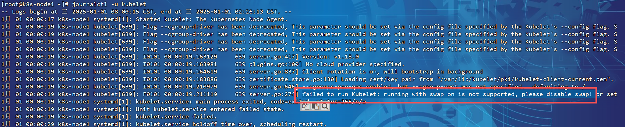 看一眼日志journalctl -u kubelet,找到原因