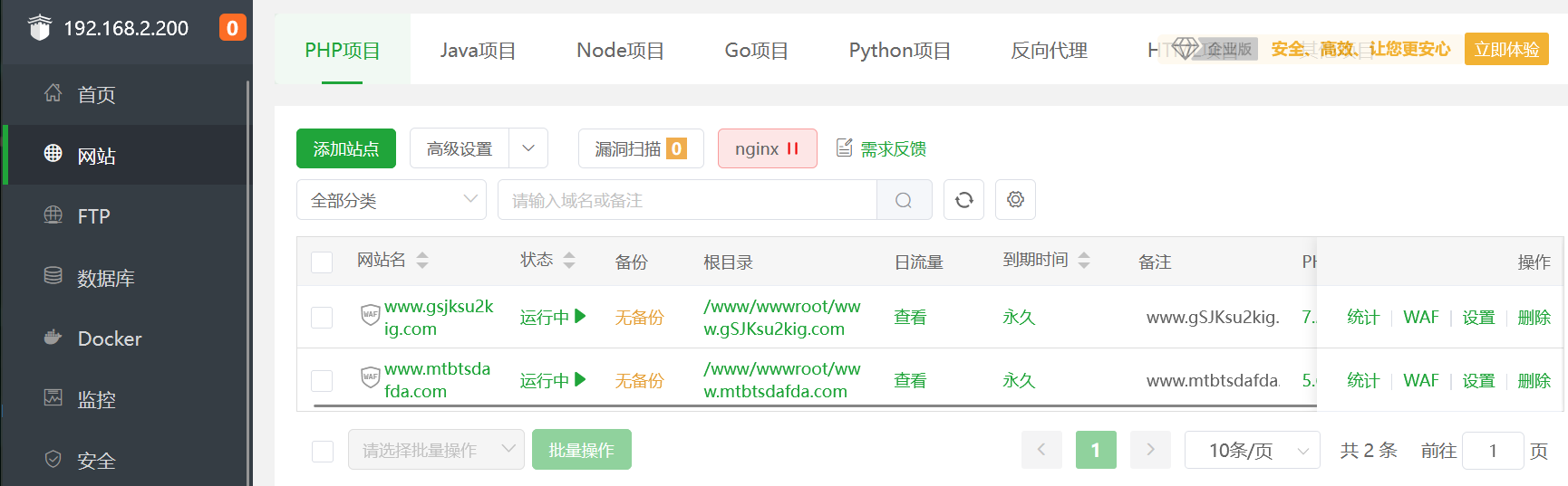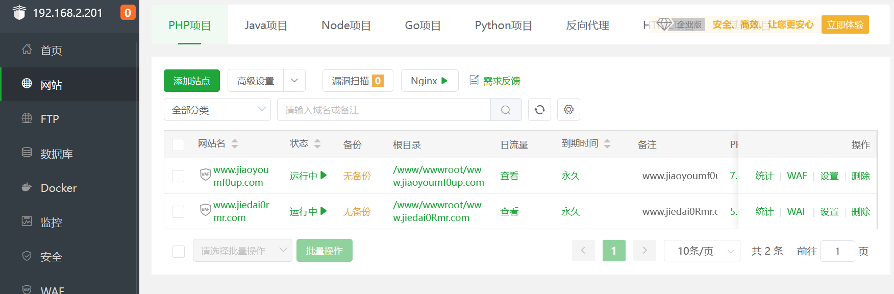 访问宝塔,node1也是同样的方法