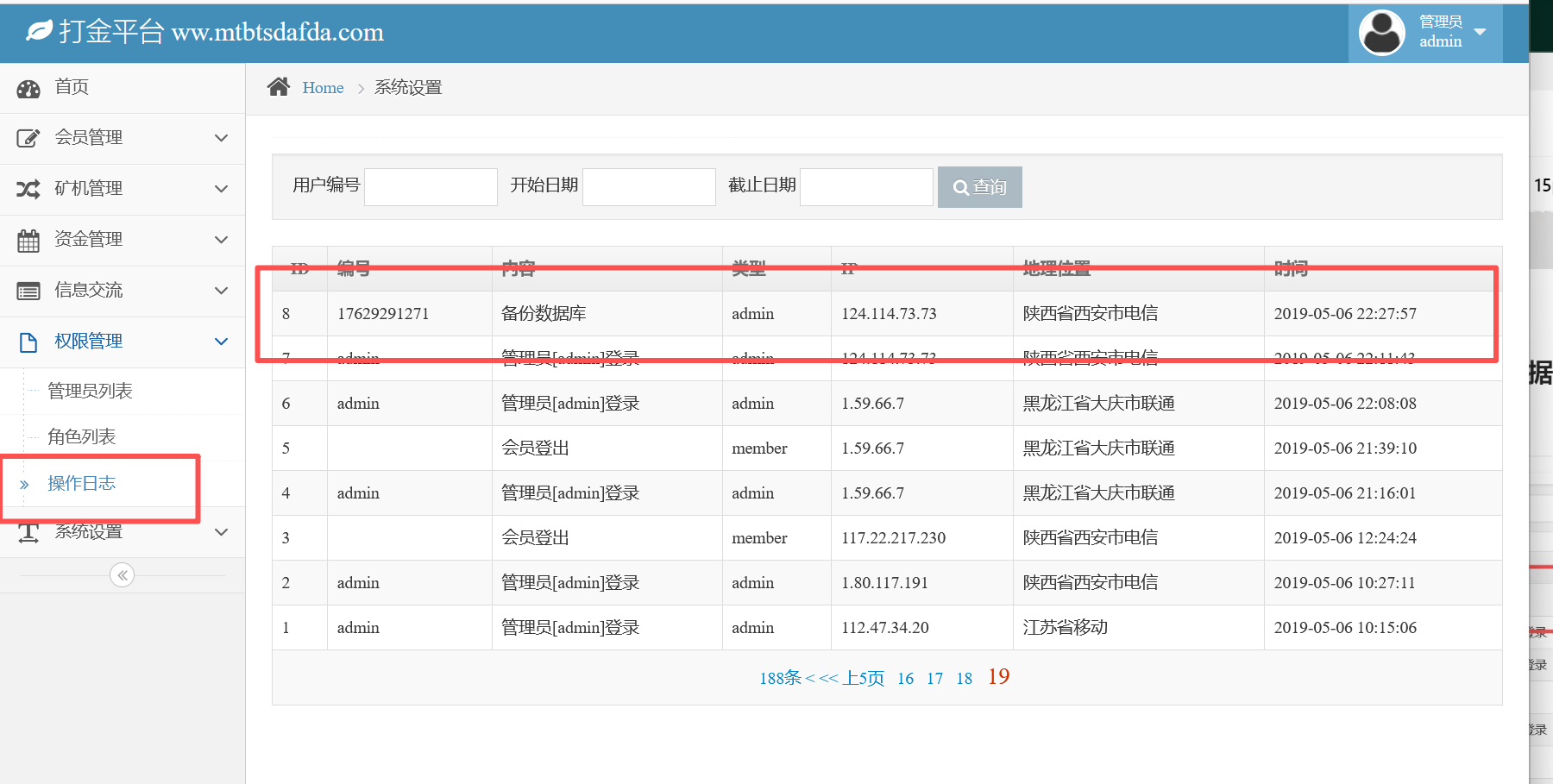 后台操作日志