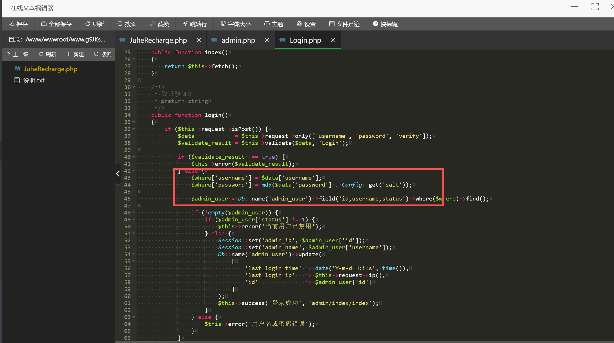 找一下关于后台登录密码的文件