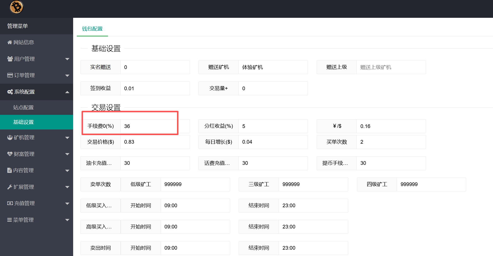 在基础设置里看到手续费为36%