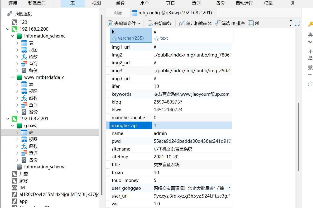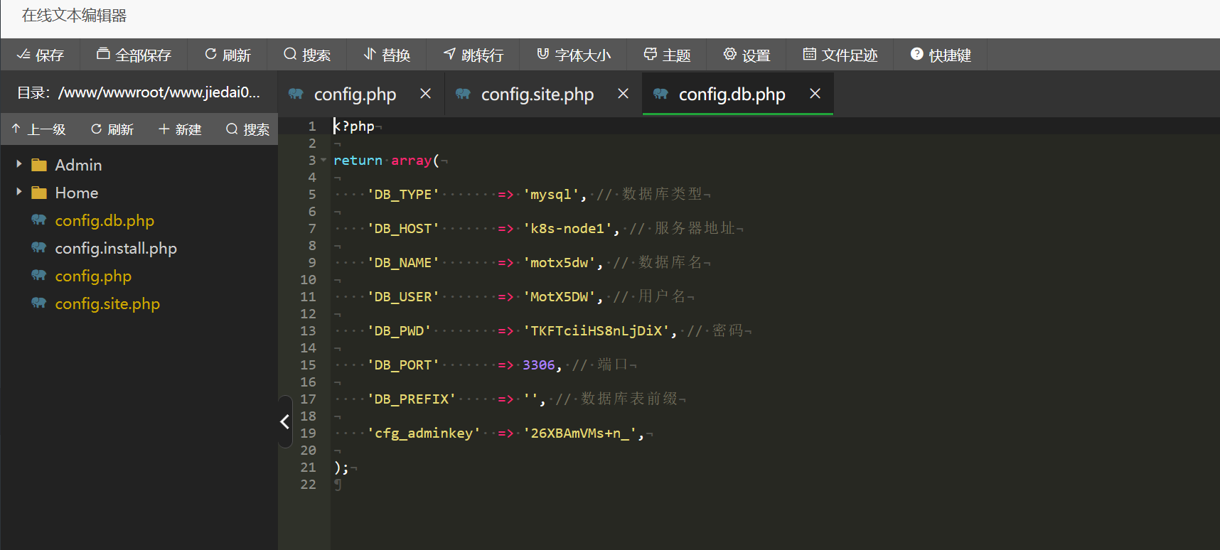 在mh_config中看到了密码