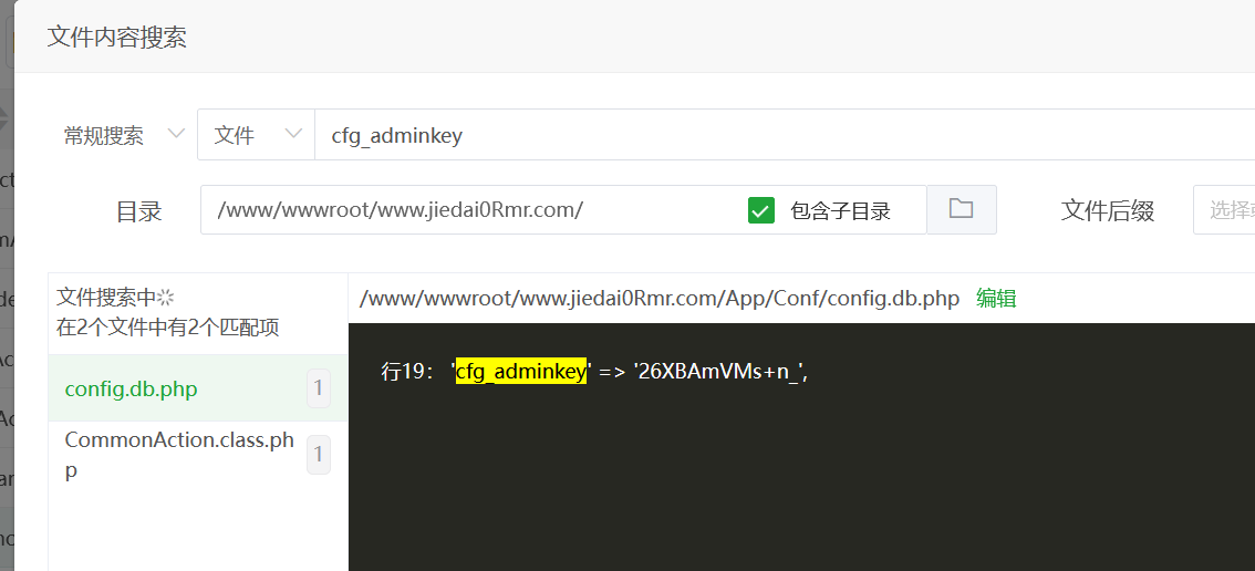 额外字符串应该就是上面的cfg_adminkey,搜索一下能搜到