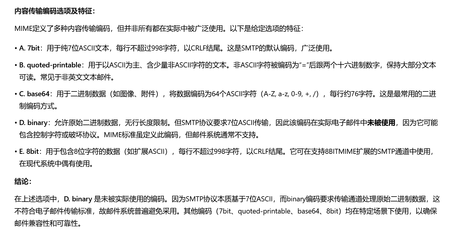3 请分析邮件的多用途互联网邮件扩展的格式结构(MIME), 并指出下列哪种内容编码未被使用