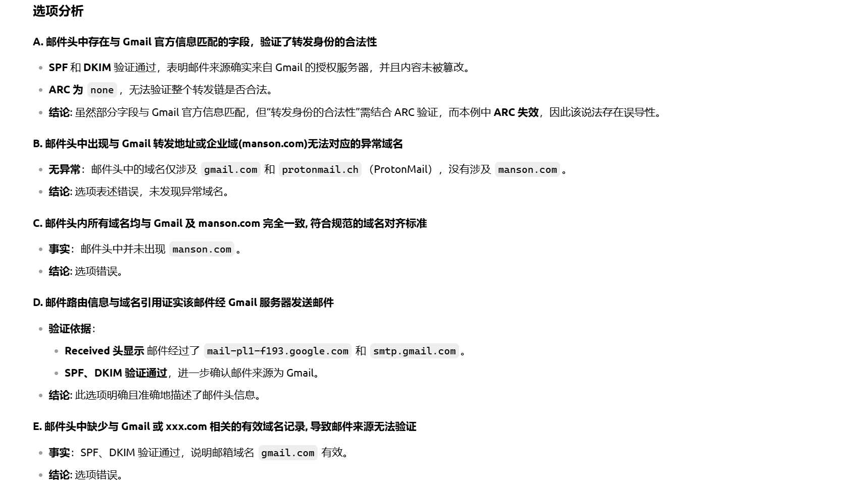 E. 邮件头中缺少与 Gmail 或 xxx.com 相关的有效域名记录, 导致邮件来源无法验证