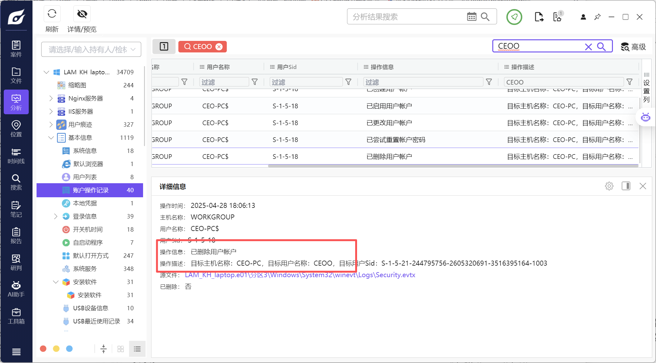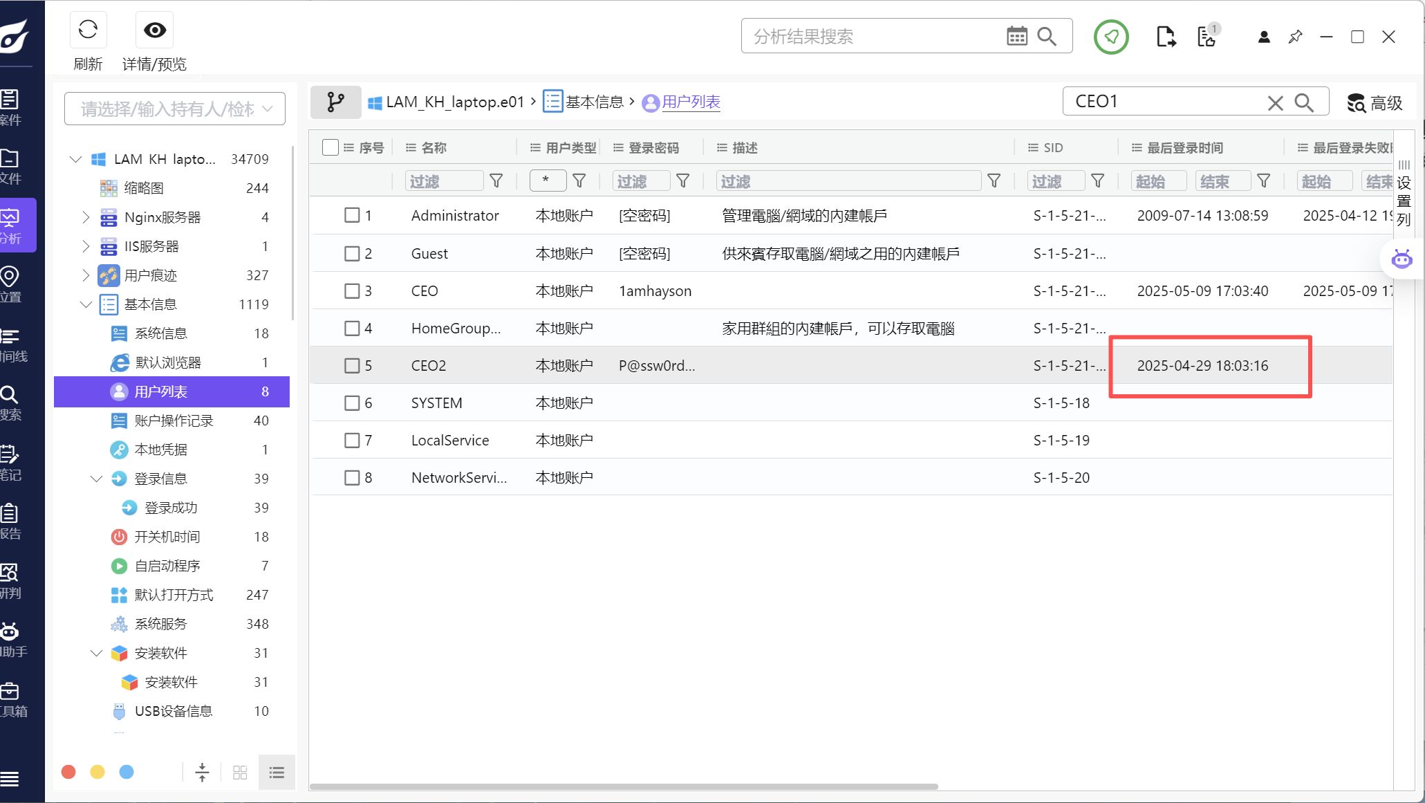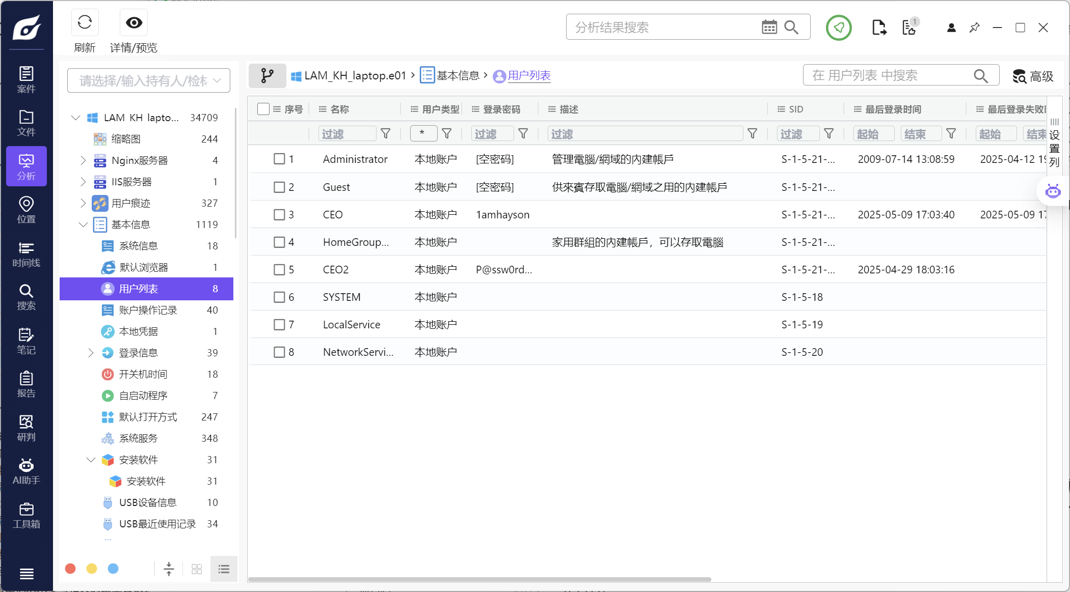 综合分析这块就是拿所有的检材翻着看看,题目信息基本上都可以找到,这里就不过多赘述了