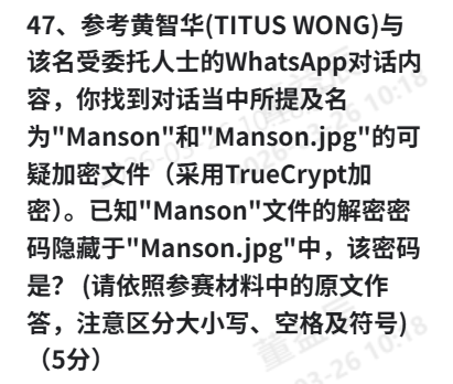 15 于 2025 年 5 月 2 日, 在 Manson Finance 的网页多了一张不属于该网站的照片. 而经调查后, 亦于 Duncan 的电脑中发现该相同的照片, 请提供该照片的 SHA256