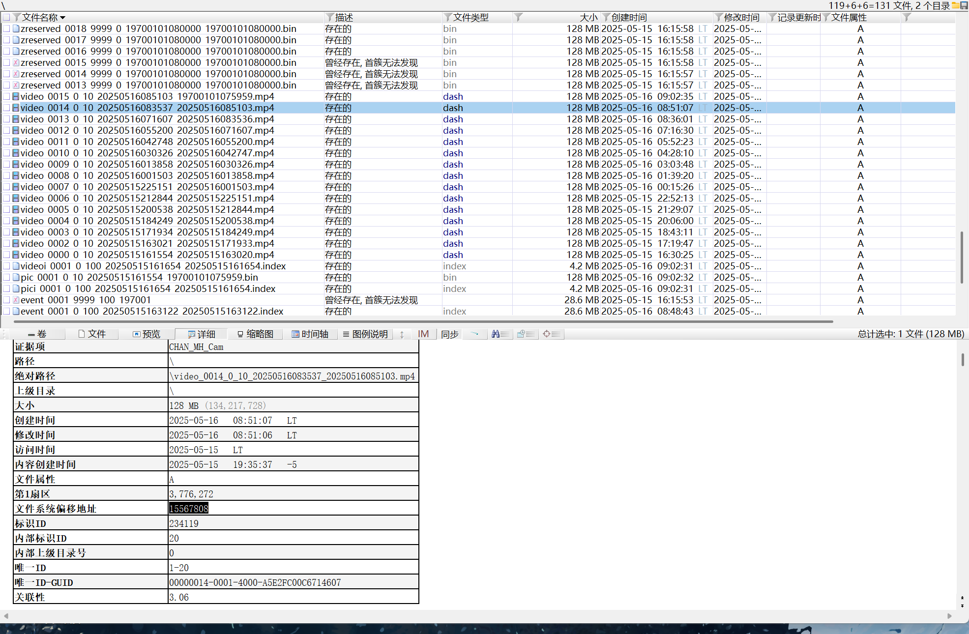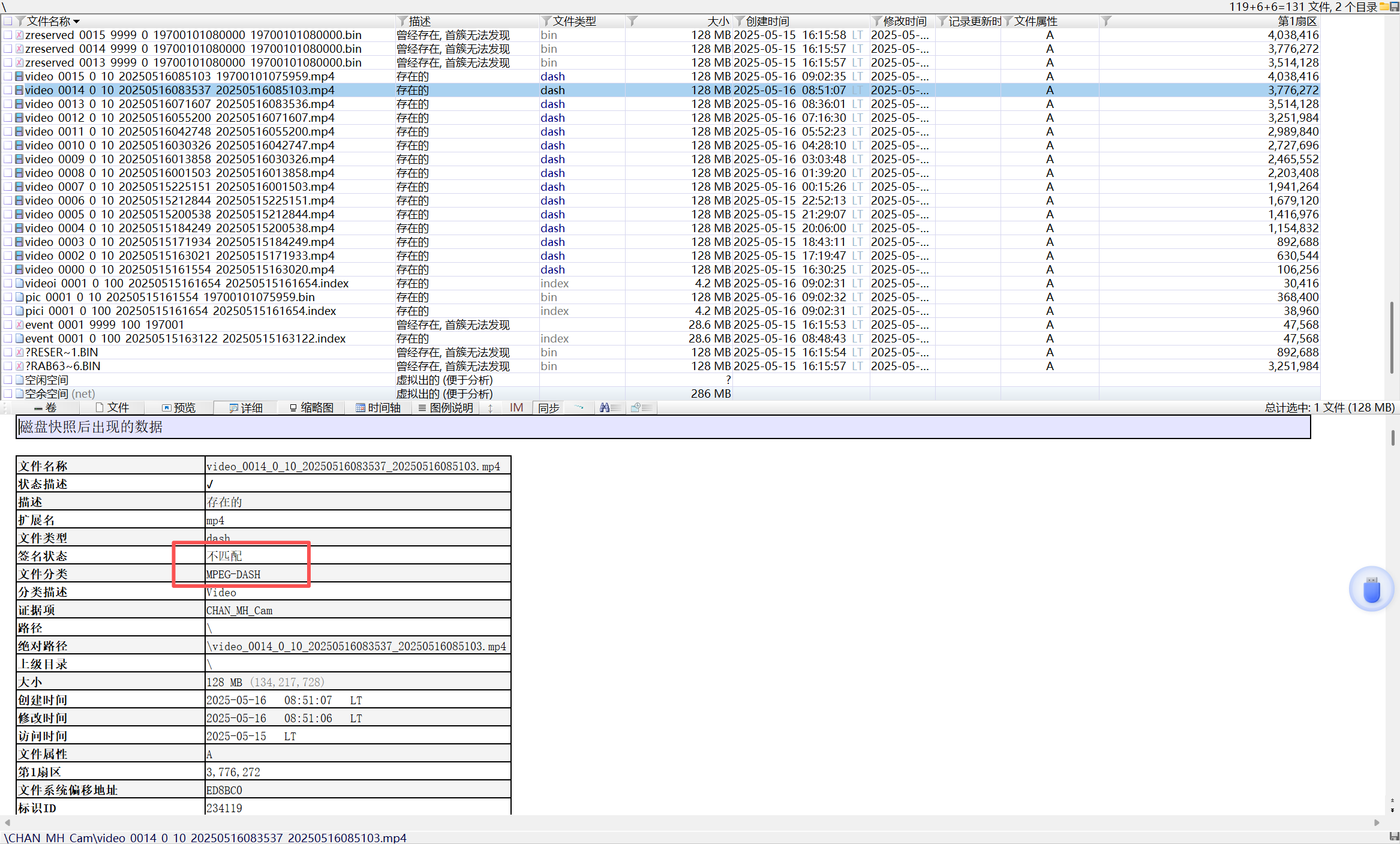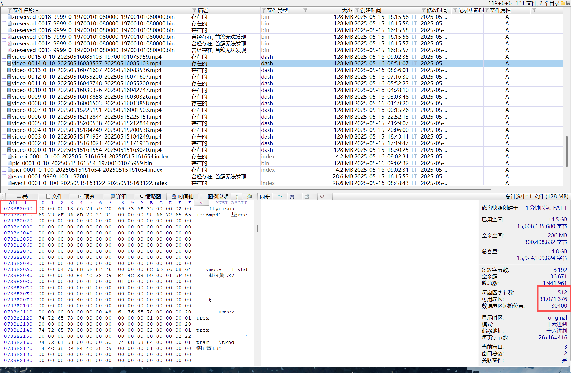 05 根据上一题, 该视频文件数据在储存设备上的第一磁区号(1st sector)