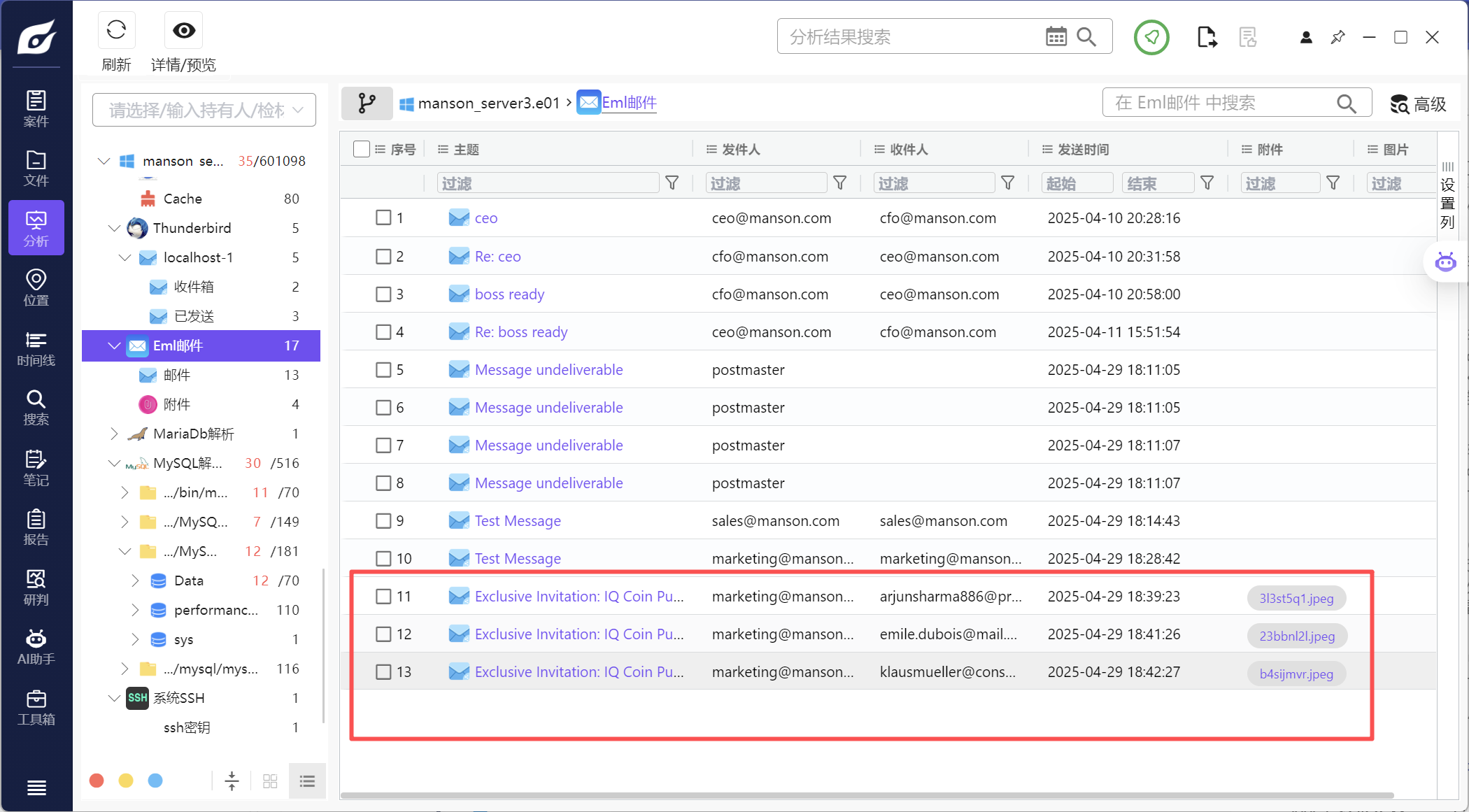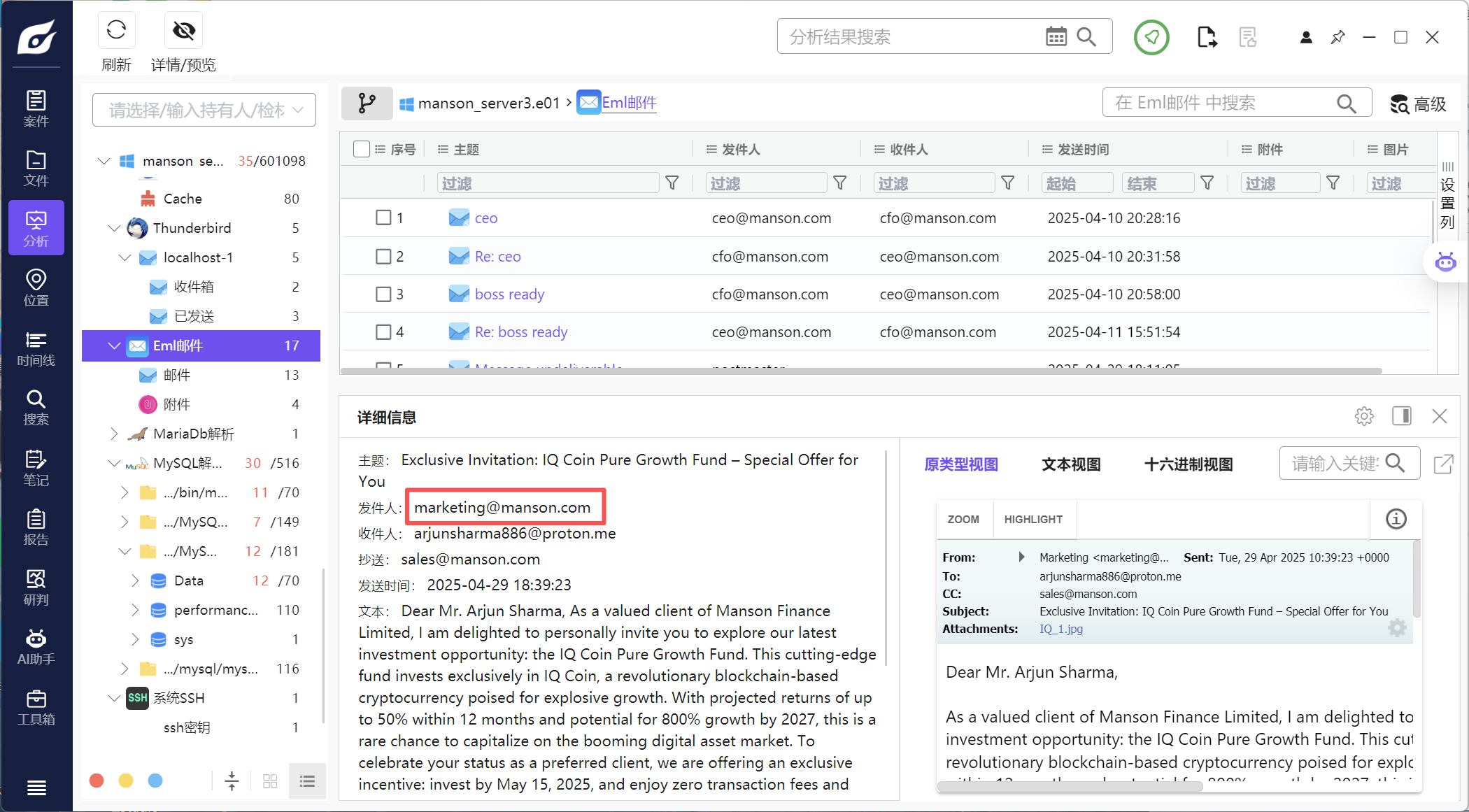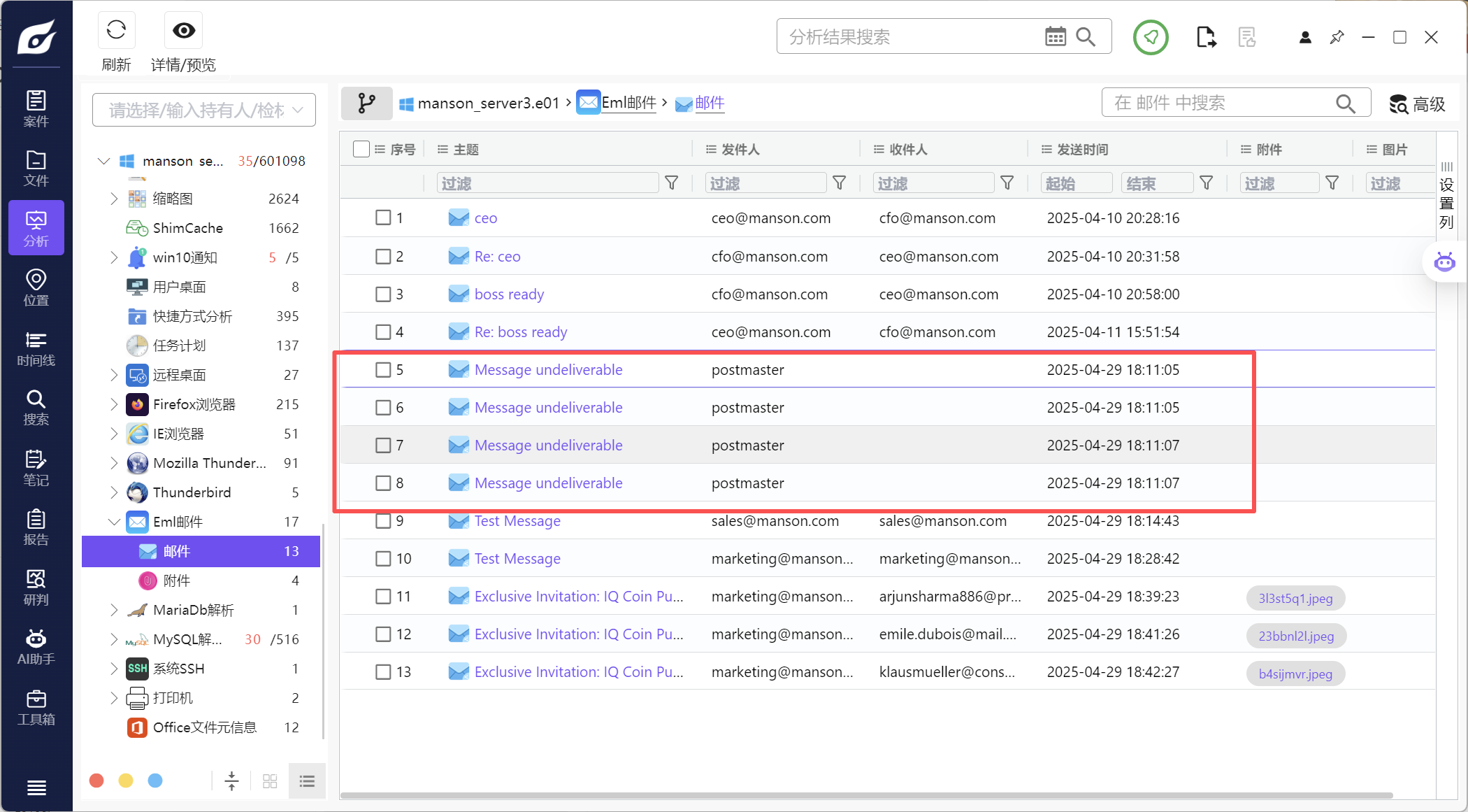 5 在邮件材料中, 哪一封邮件的原始发件人地址系 marketing@manson.com, 请指出这封邮件存在于以下哪一个EML 文件当中