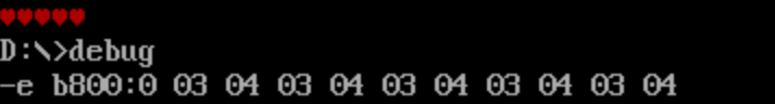 从b800:0开始的内存单元开始,依次写入十六进制数据04 03,重复写5次。