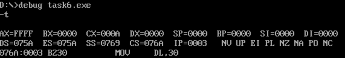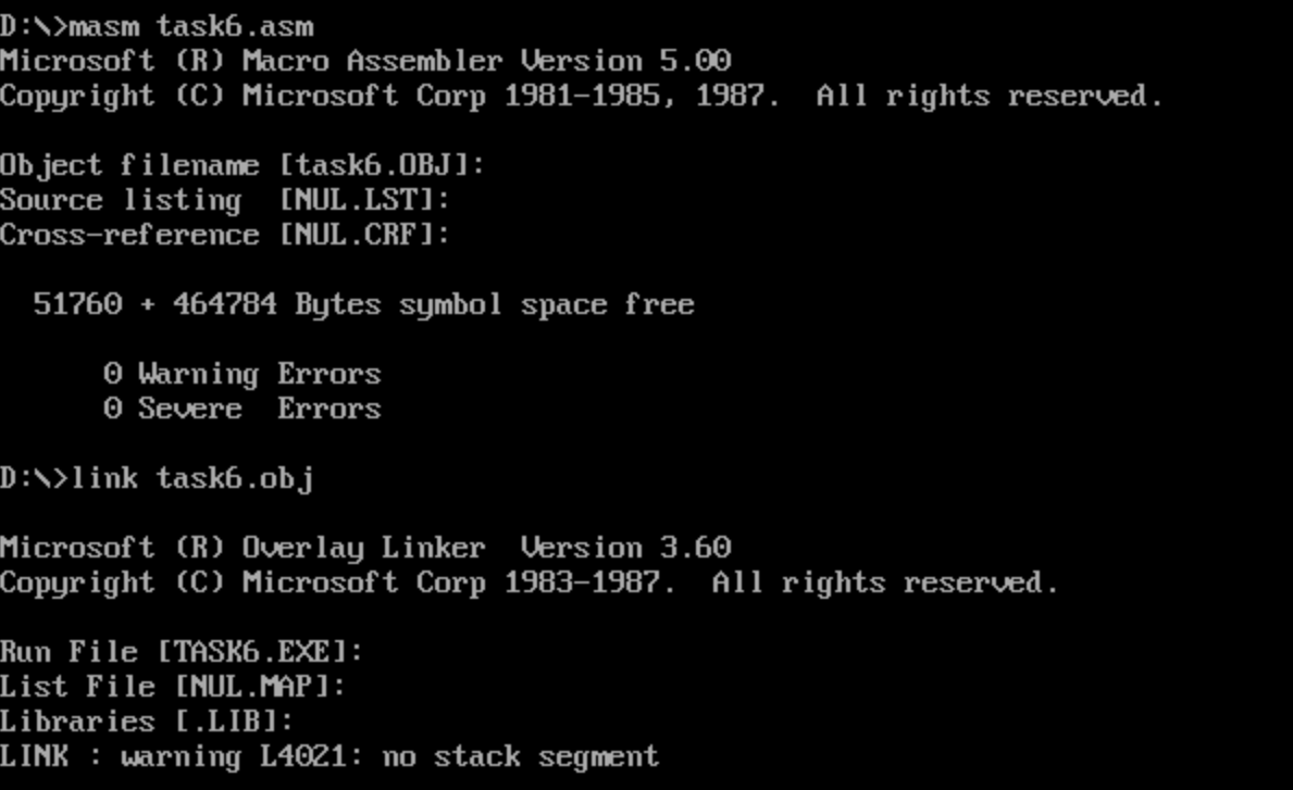 使用masm、link,汇编、链接,得到可执行文件task6.exe。