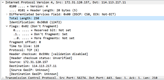 源IP地址(source):标识IP数据报的源端设备,由图可知该源IP地址为172.31.120.157。