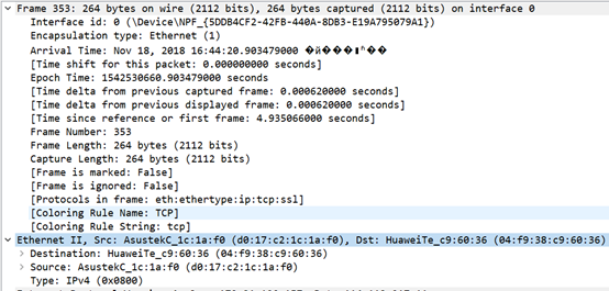 选择某一行抓包结果,双击查看此数据包具体结构