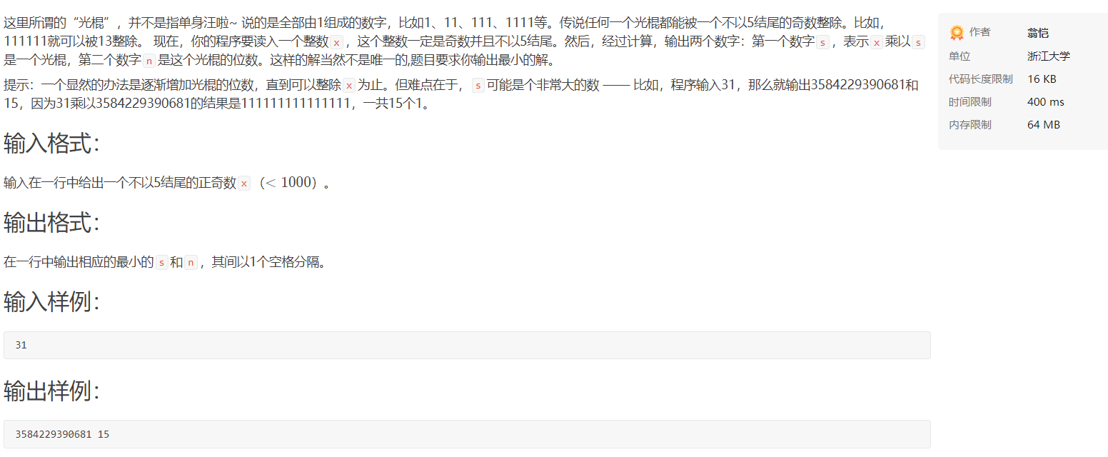 [https://pintia.cn/problem-sets/1365920627062833152/problems/1365920667080687657](7-42 整除光棍)