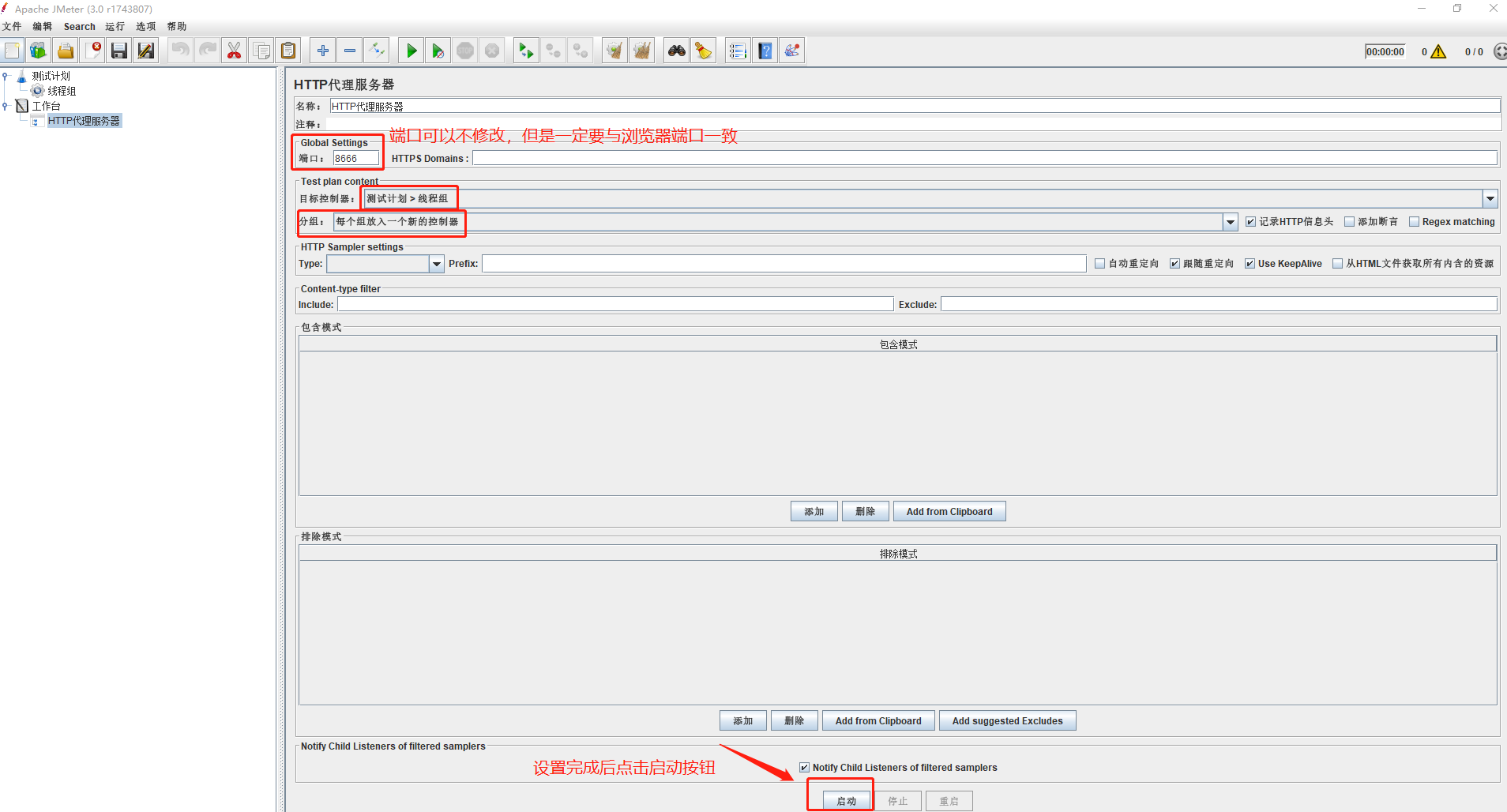 1、添加线程组 2、添加http代理服务器 进行设置 3、设置浏览器代理 使用火狐浏览器,点击设置,搜索代理 点击进入代理设置 4、设置完成后点击“启动”按钮 5、打开浏览器输入测试地址,进行录制。完成后点击停止 6、展开线程组,查看结果