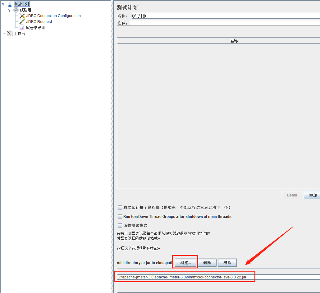 3、测试计划中添加mysql-connector-java-8.0.22.jar
