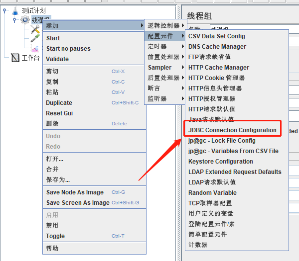 5、添加JDBC Connection Configuration