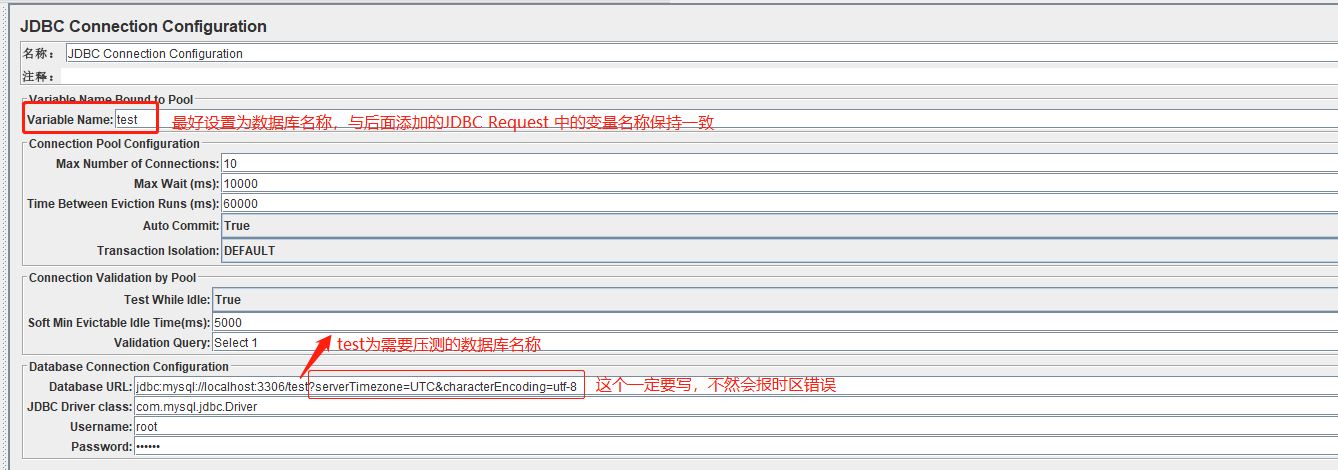Database URL:jdbc:mysql://localhost:3306/test?serverTimezone=UTC&characterEncoding=utf-8