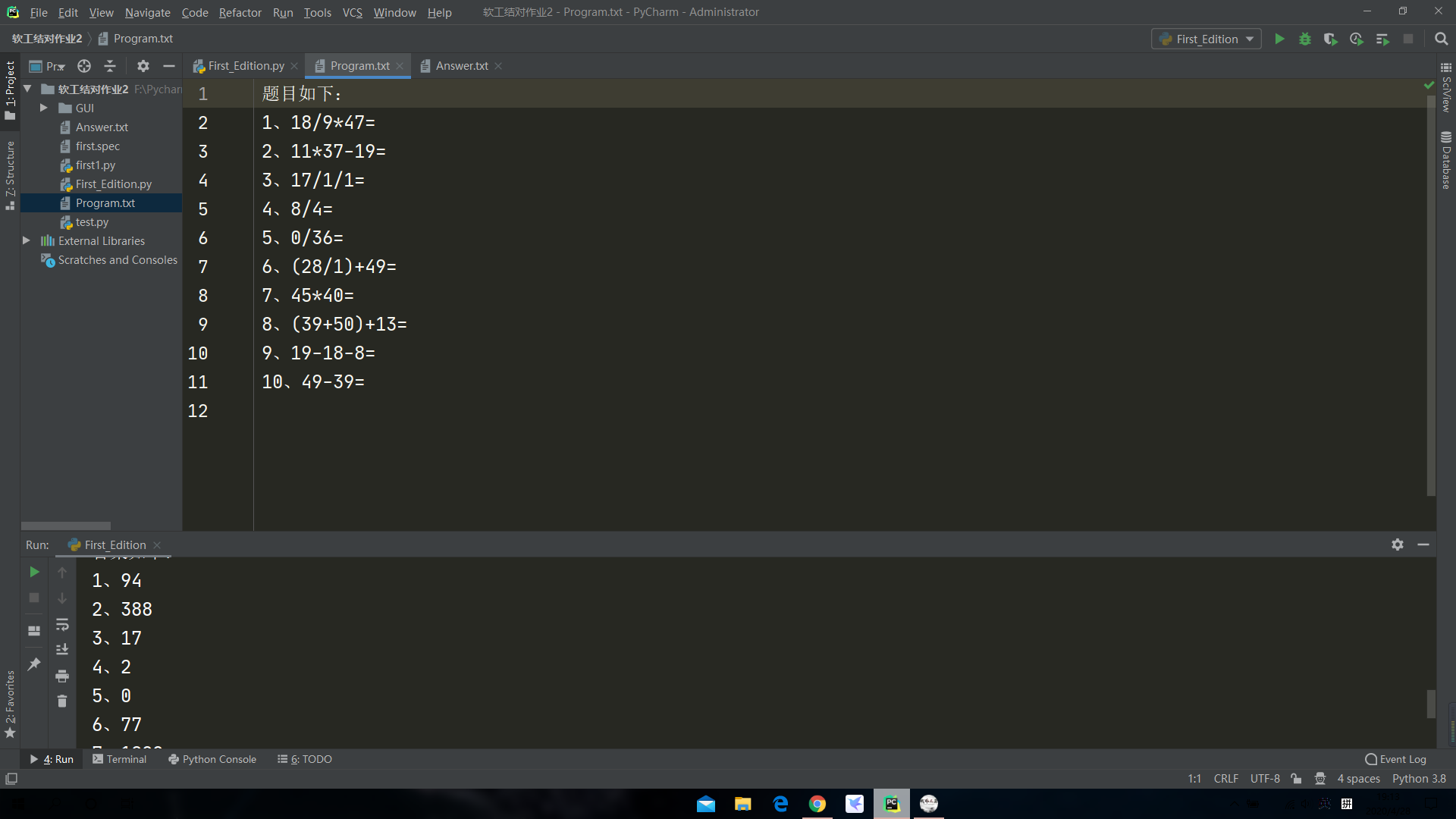 这次的任务代码其实是一个失败品,它仍存在许多目前我知道但不知道该怎么解决的bug,同时,用户图形交互界面也并没有实现,虽然找到了Python的GUI界面编写的教程,但是因为个人能力的问题,没能在任务时间内掌握GUI的编写,这对我个人而言是一个警钟:目前掌握的知识只是大海中的一滴水,仍需要继续努力的往下学习,一旦停滞不前,就会被碾压于时代的车轮下。我会在以后的空闲时间继续来完善这次作业,以达到更好的显示效果。