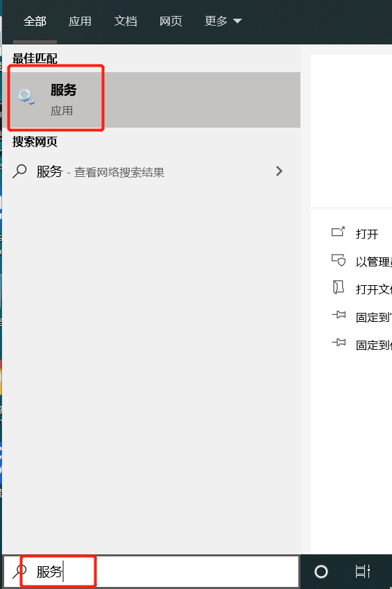 1、在win10任务工具栏搜索“服务”