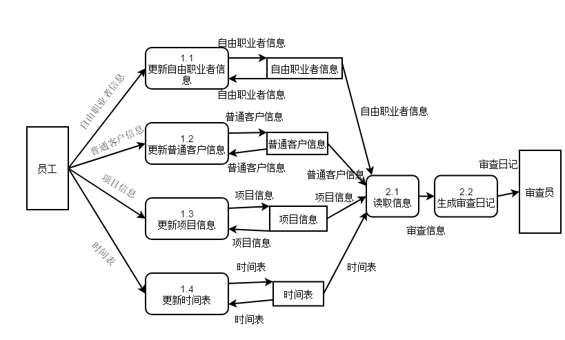 功能性需求:能对自由职业者信息、普通客户信息、项目信息以及时间表进行接受处理并产生审计信息,随时更新自由职业者信息和普通用户信息以及时间表,能够搜索自由职业者分类、搜索项目分类、搜索客户分类以及维护合同中自由职业者的时间表。