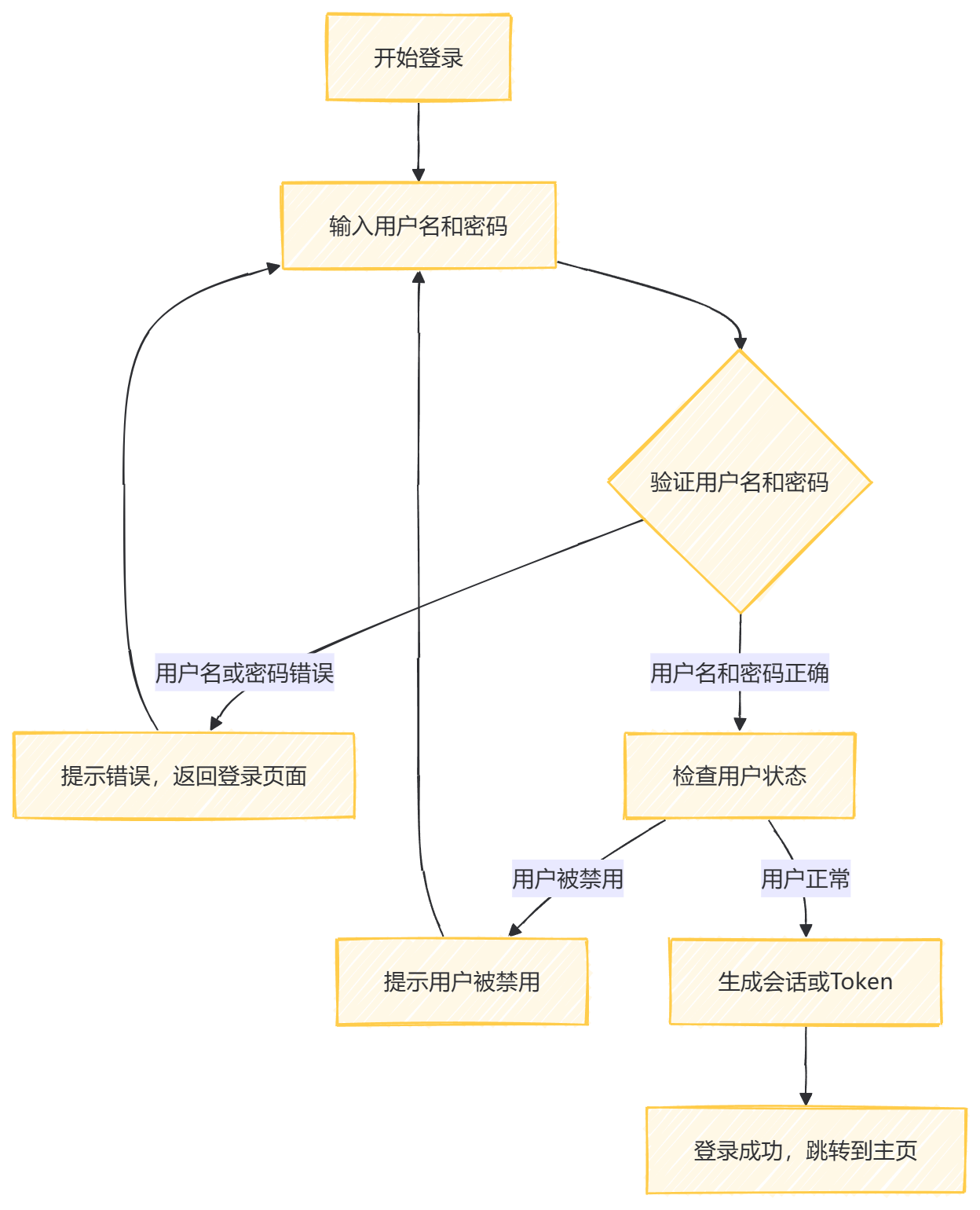 如果用户名或密码错误,系统提示用户 “用户名或密码错误,请重新输入”,并返回登录页面,让用户重新输入登录信息