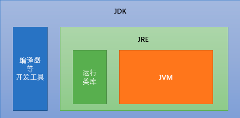 JDK(Java Development Kit):是Java程序开发工具包,包含JRE和开发人员使用的工具,例如javac.exe(编译器)等