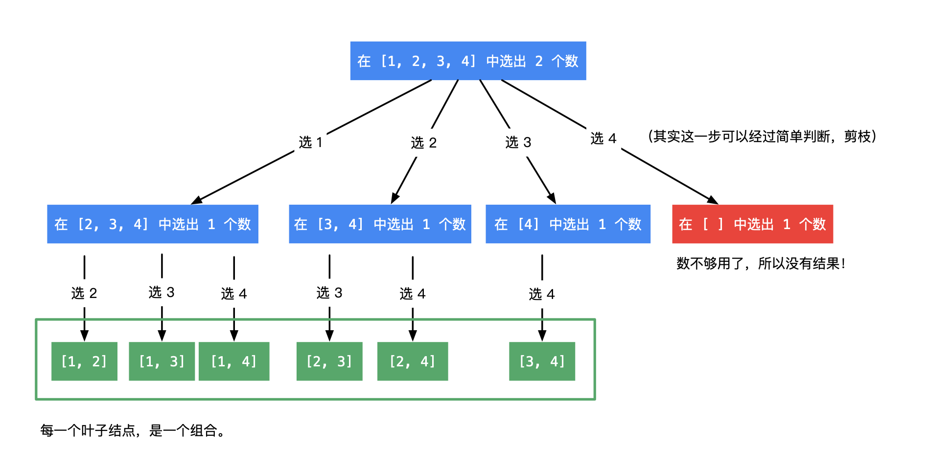因为组合问题中选过的元素不会重复选取,所以开始索引为 start ;而排列问题中,索引从 0 开始。(选择列表的 for 循环)