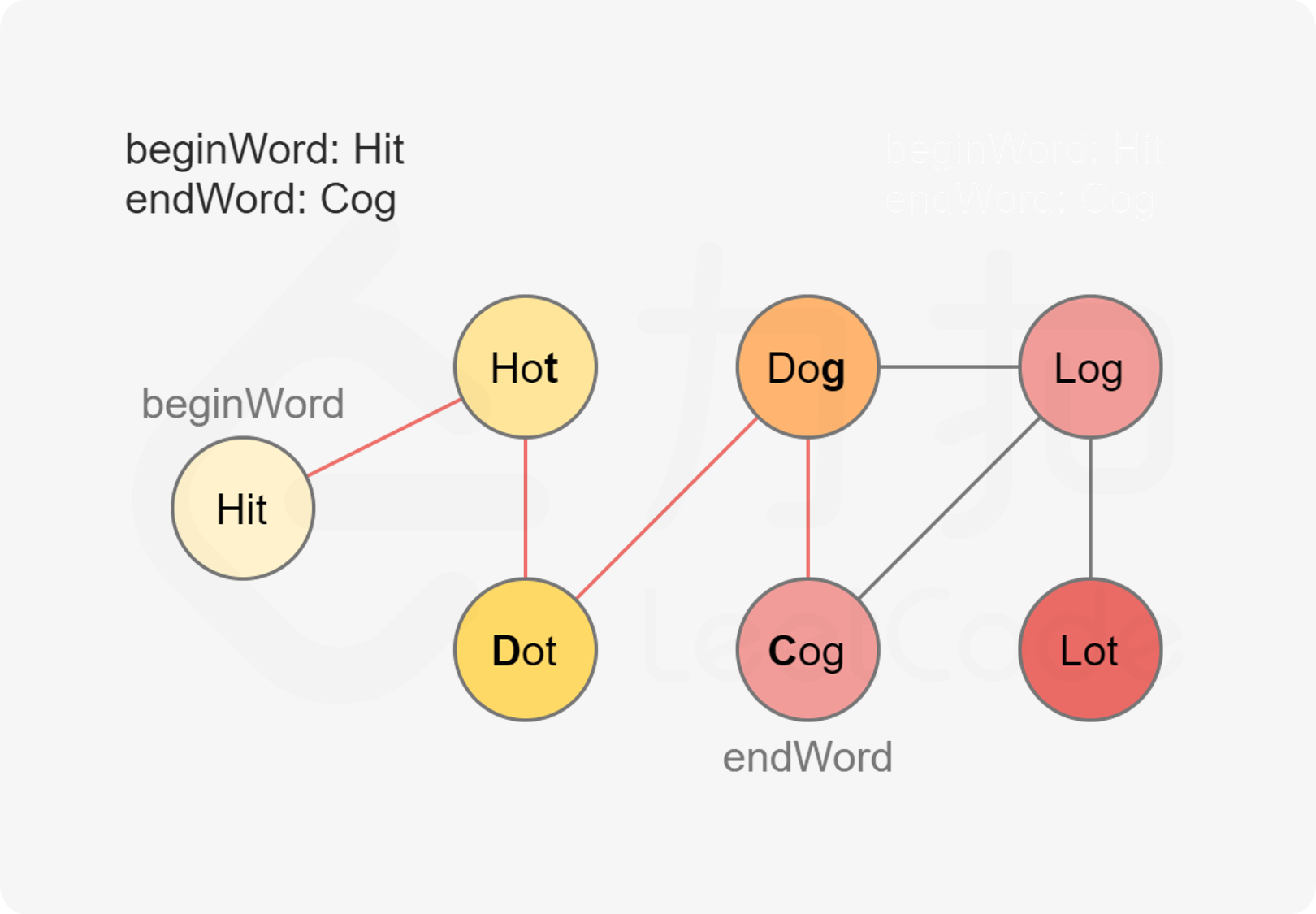 基于该图,以 beginWord 为图的起点,以 endWord 为终点进行 BFS,寻找它们之间的 最短路径 即可。