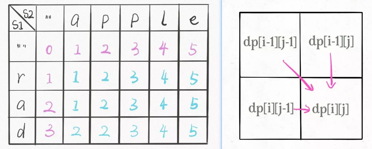 dp[i][j] = dp[i - 1][j - 1] + 1;