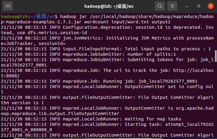 - 运行hadoop-mapreduce-examples-2.7.1.jar