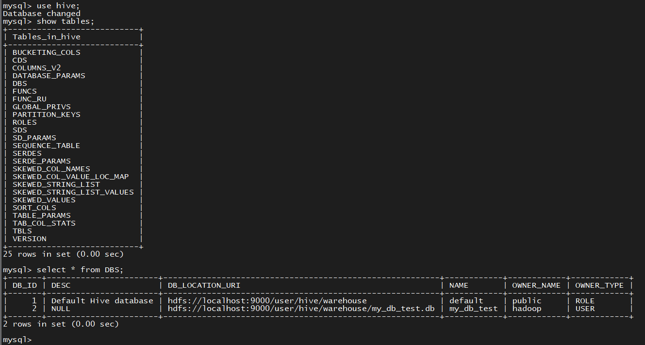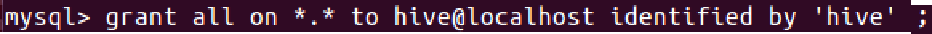 - 配置mysql允许hive接入 show grants for 'hive'@'localhost';