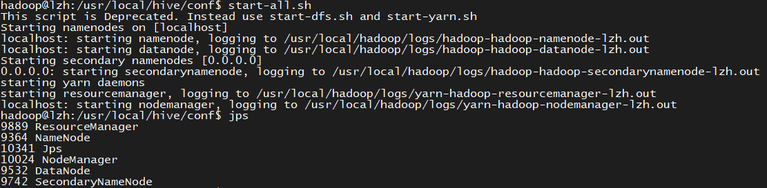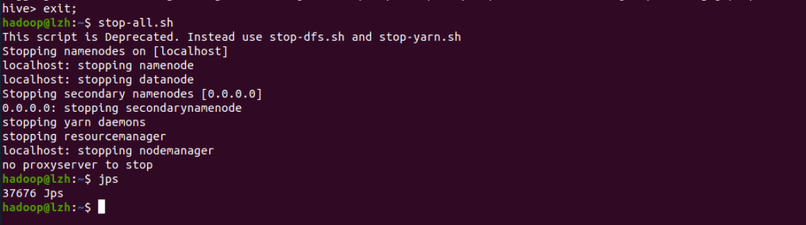 - 启动Hadoop--启动Hive--退出Hive--停止Hadoop