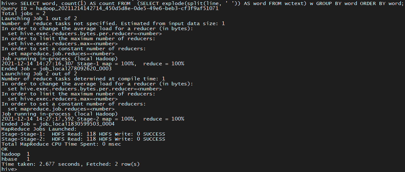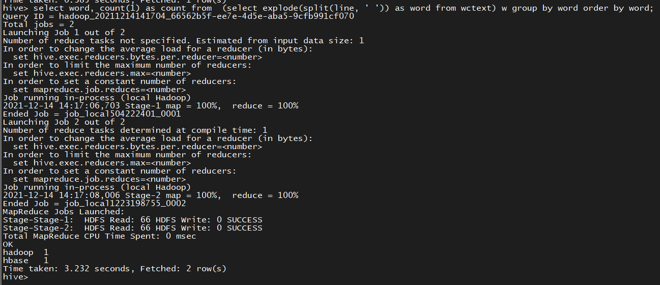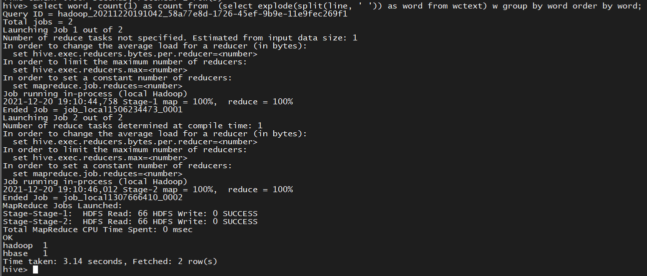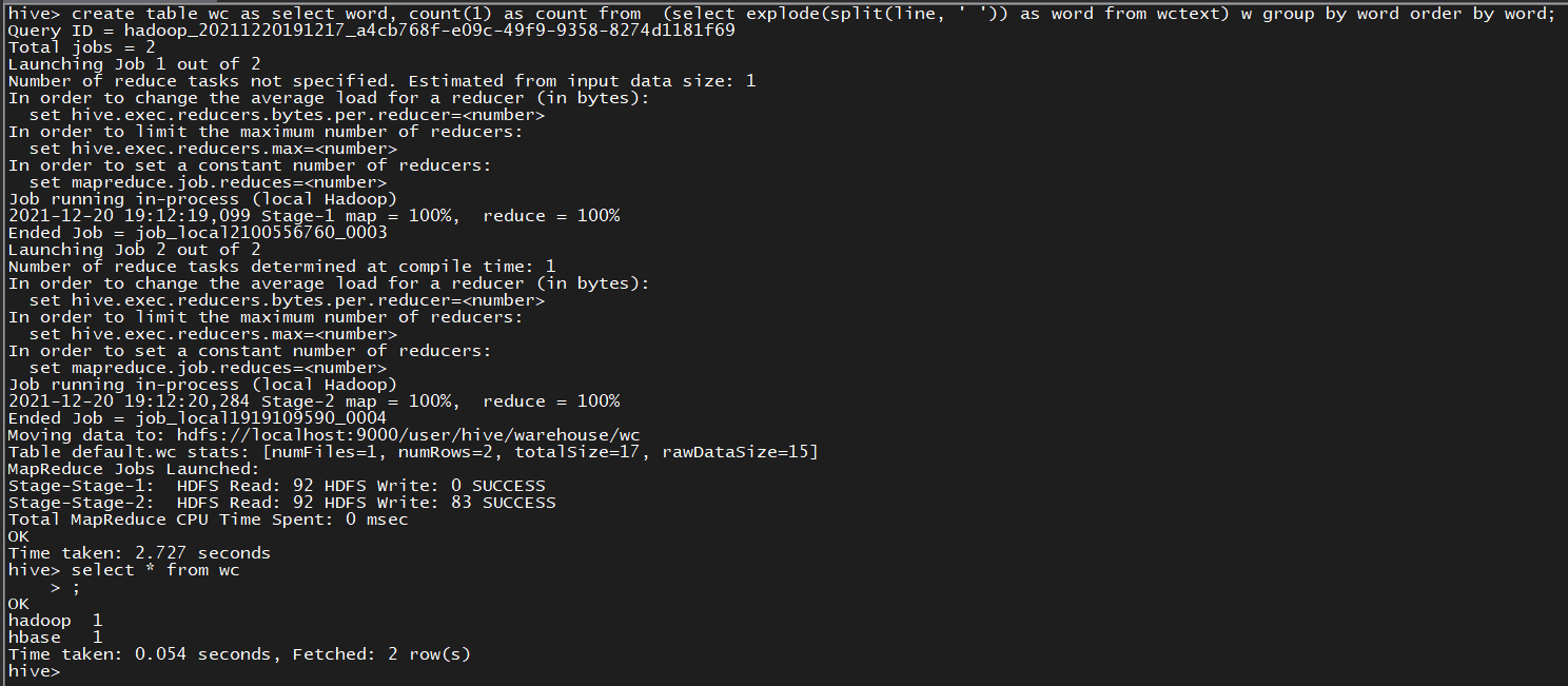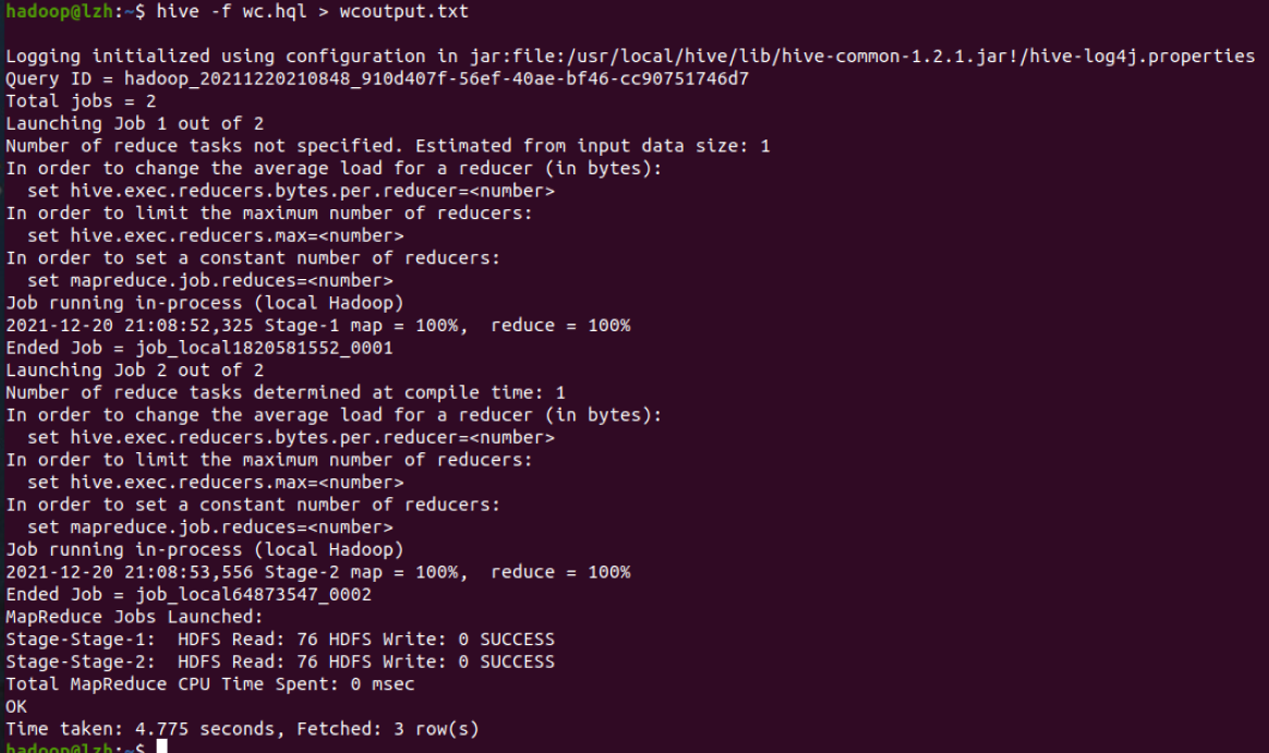 13.本地调用本地hql文件进行词频统计,将结果保存为本地文件