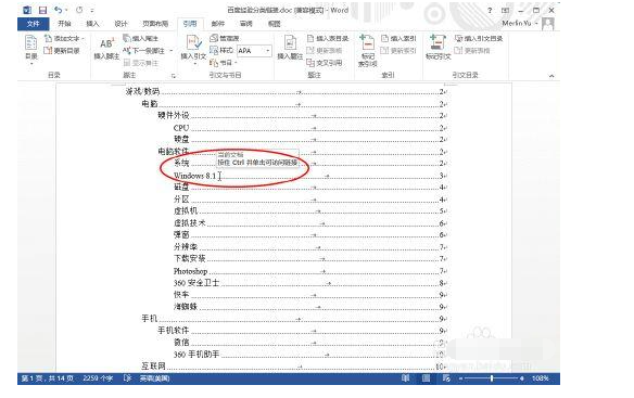 光标快速定位于相应标题;