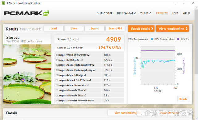 通过将PCMark 8的测试结果导出为XML格式,我们能够看到更多的详细数据,其中就包括了Average Access Time存取时间,即平均读写延迟。4K数据不高的Q200在延迟上要比TR200更低,自然实际性能和使用体验会比TR200更佳。