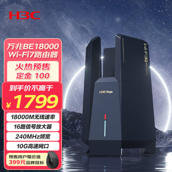 新华三最新上架了BE18000 Wi-Fi 7万兆路由器,将于今天10点正式开启预售,首发到手价1799元。