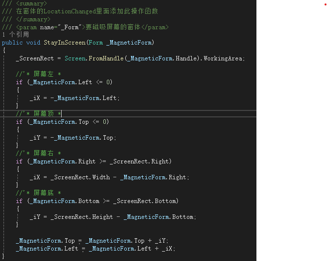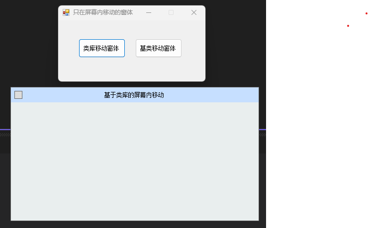 上次记录了窗体磁吸屏幕的源码(https://www.cnblogs.com/lzhdim/p/18859191),这次再接再厉,写一个窗体限制在屏幕内移动的例子。源码比较简单,就是判断窗体是否移动到屏幕边缘,超出则限制窗体的位置。