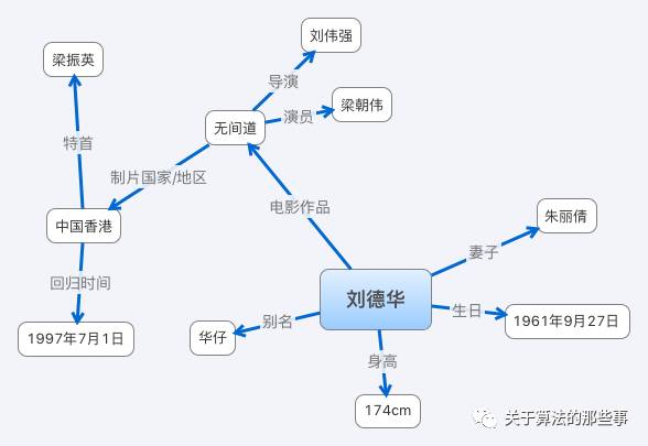 刘德华 (实体)-- 妻子(属性) -> 朱丽倩(另一个实体)