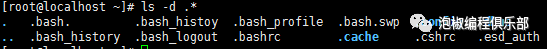 ls -a 显示所有文件及目录 (ls内定将文件名或目录名称开头为"."的视为隐藏档,不会列出)与上图作对比。linux命令大小写意义一般不同,这里如果用-A ,输出内容相同,但不列出 "." (目前目录) 及 ".." (父目录)