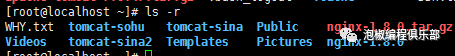 ls -r 将文件以相反次序显示(原本依英文字母次序)与上图作对比。所以此时W开头的文件处于第一个。